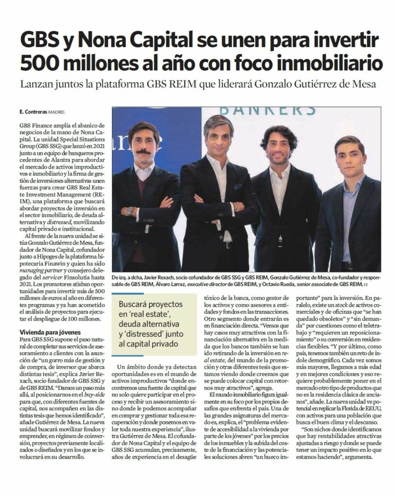 💬 For GBS SSG it completes the advisory services with “another hat of management and purchasing, of an investor that covers different theses”, explains Javier Rexach Vega, co-founding partner of GBS SSG and GBS REIM.